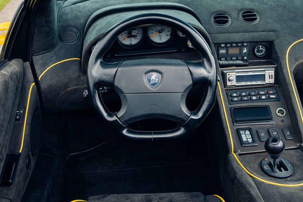 The vehicle, initially ordered by official Lamborghini retailer Touring Auto S.r.l, showcases a striking Roadster Giallo yellow paint job. Its black 'Torpedo' Alcantara interior is tastefully accented with SV-exclusive stitching and yellow piping.