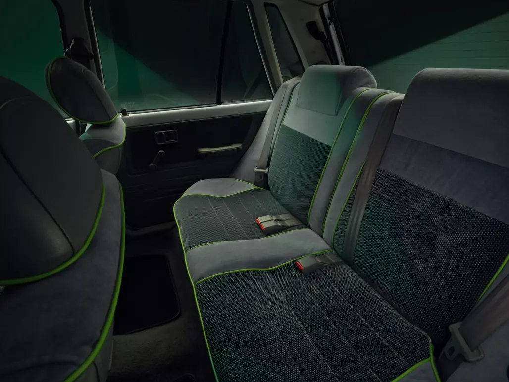 The stock wheels and plastic caps remain, and even the charging port is cleverly hidden beneath the original fuel filler flap. However, subtle touches like the White Pearl paint and lime green interior stitching nod to Kia’s modern EV range, specifically the high-performance EV6 GT.