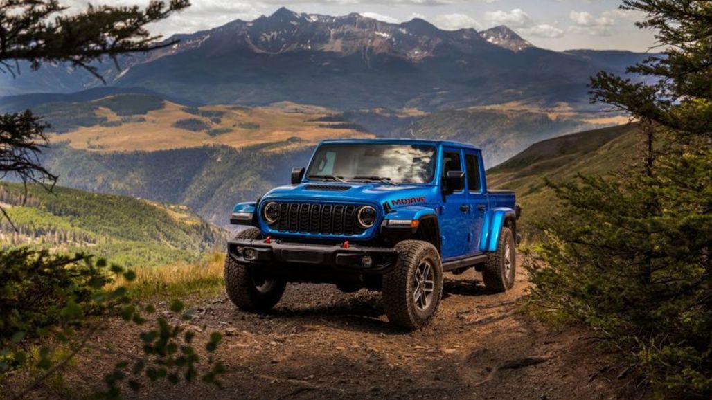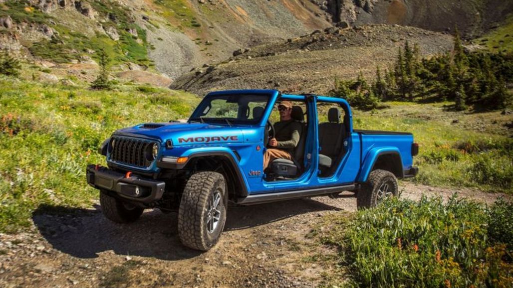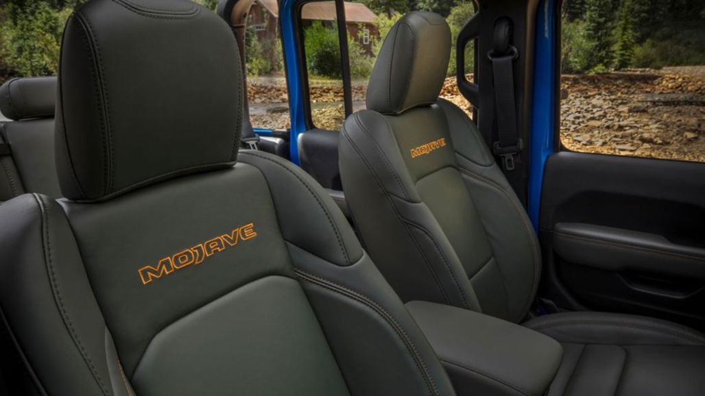Also new for 2024 are 12-way power-adjustable front seats, which Jeep says have been water-tested. These are available exclusively on two new range-topping models: Mojave X and Rubicon X. The two trim levels also offer steel bumpers, steel rock rails on the bed corners, a full-time transfer case, an integrated off-road camera, and Nappa leather trim.