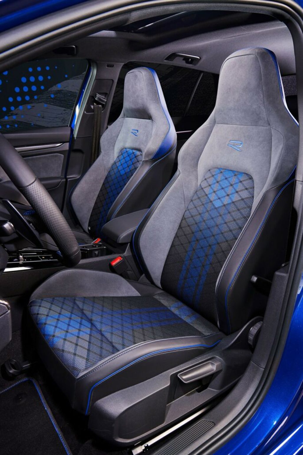 Finally, comfort and style are ensured with sports seats, faux carbon fibre trim, blue accents, stainless steel pedals and a 30-colour ambient lighting system.