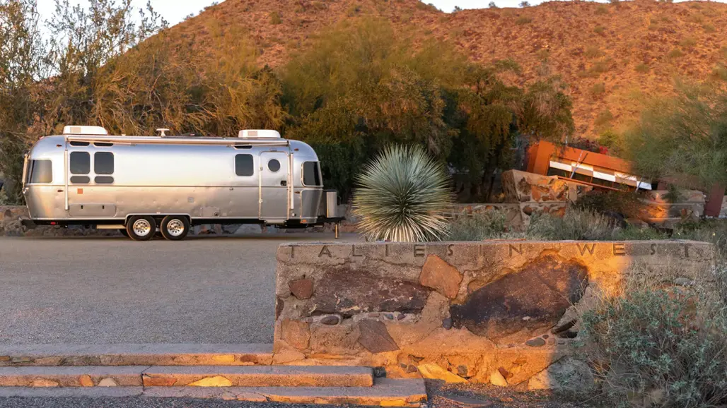 - Airstream has revealed a limited-run caravan styled after Frank Lloyd Wright’s Taliesin West.