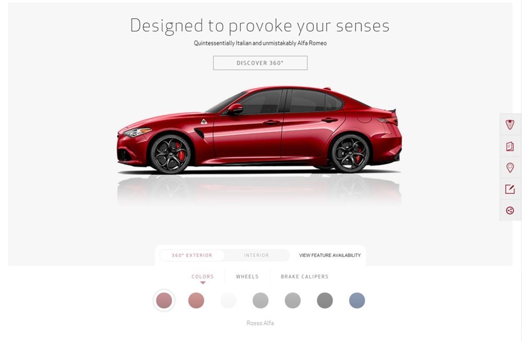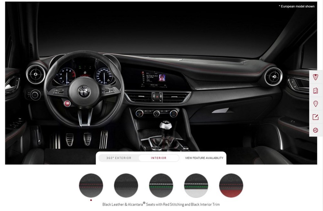 But, for those who just can’t stop thinking about Italy’s latest hero, Alfa’s American arm has handed down some basic relief: a mini configurator. Although not fully set up with pricing, Alfa Romeo USA’s configurator allows fans and hopeful buyers to experiment with colour and wheel choices - and that’s gotta be better than nothing. (Unless you can’t wait, in which case you’ve probably already ordered an M3 or C 63…) The US-market Quadrifoglio will be offered in two shades of red (Rosso Alfa and Rosso Competizione Tri-Coat), two metallic greys (Silverstone and Vesuvio), Trofeo White Tri-Coat, Vulcano Black and Montecarlo Blue.
