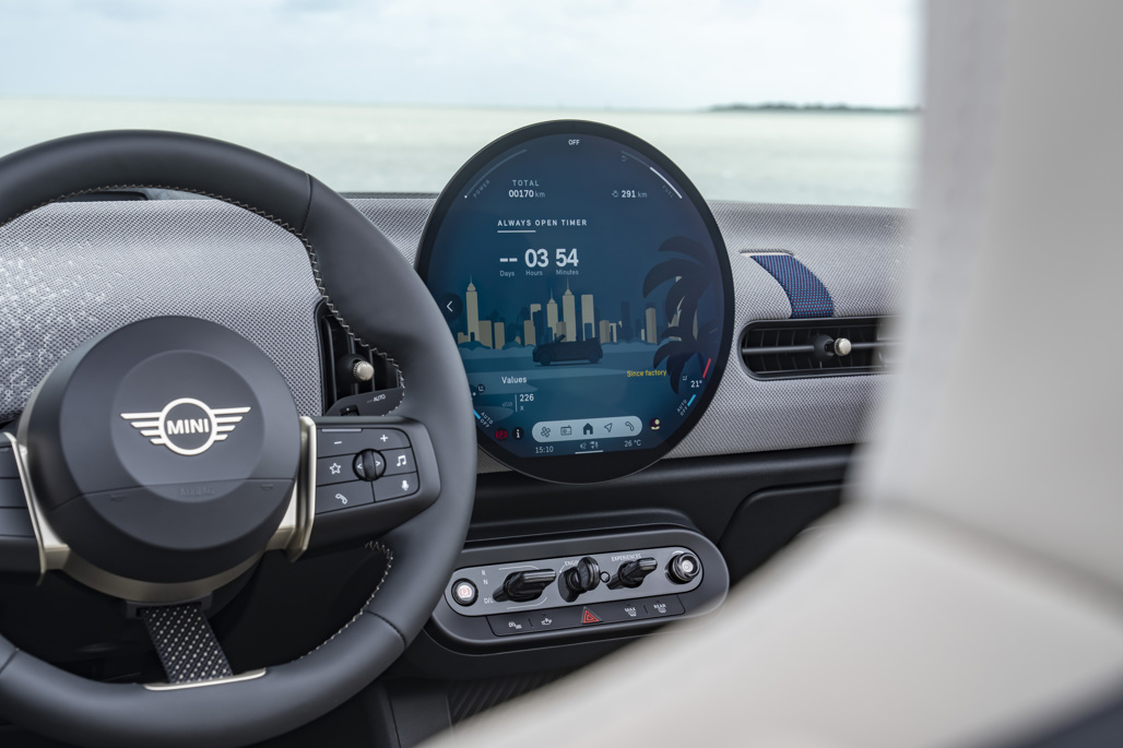 The centrepiece of the interior is a high-resolution 240mm (9.5-inch) OLED display, which houses the new MINI Operating System 9. This central display controls vehicle functions while supporting smartphone connectivity and voice control.