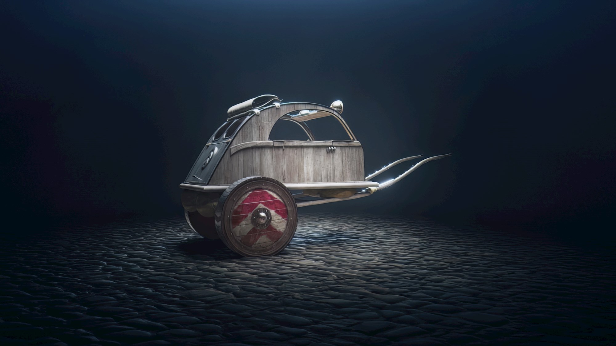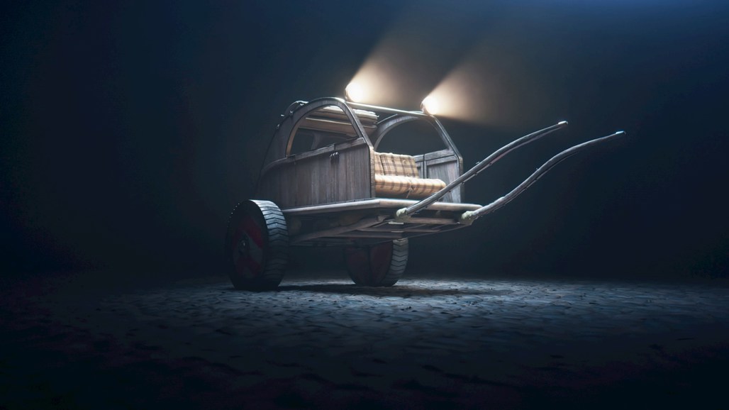 The concept chariot features suspension made of a boar's stomach, and a sunroof and headlights that are operated by fireflies boosted with a magic potion. Another detail is the wheels, made of recycled shields, incorporating Citroën’s chevrons.