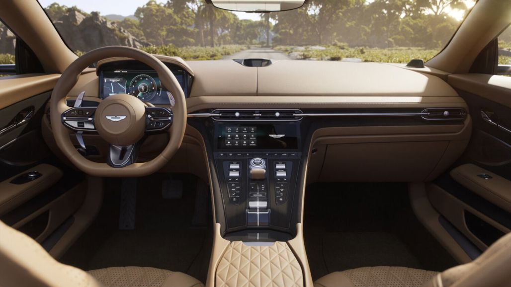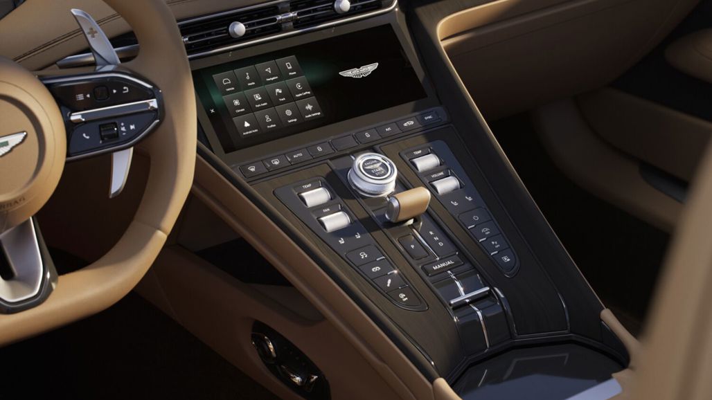 Like its coupe brother, the convertible DB12 packs a twin-turbocharged 4.0-litre V8 power plant that provides 500 kW and 800 Nm of torque. The engine sends power to the rear wheels through an eight-speed automatic transmission. It goes from 0 to 100 km/h in 3.7 seconds before reaching its 325-km/h top speed.