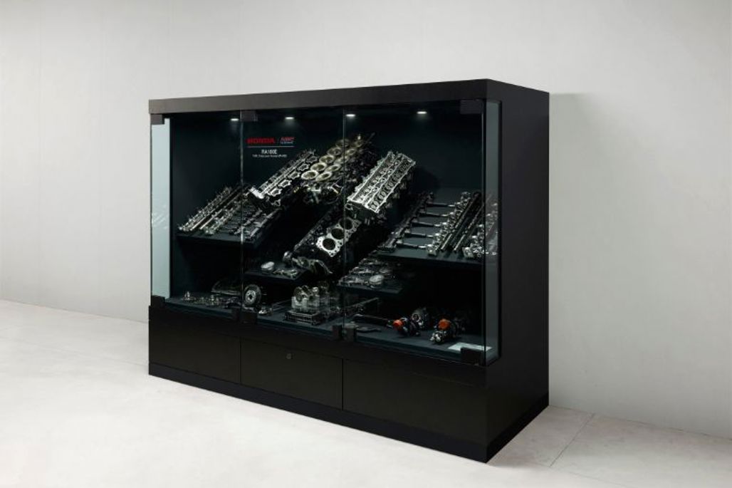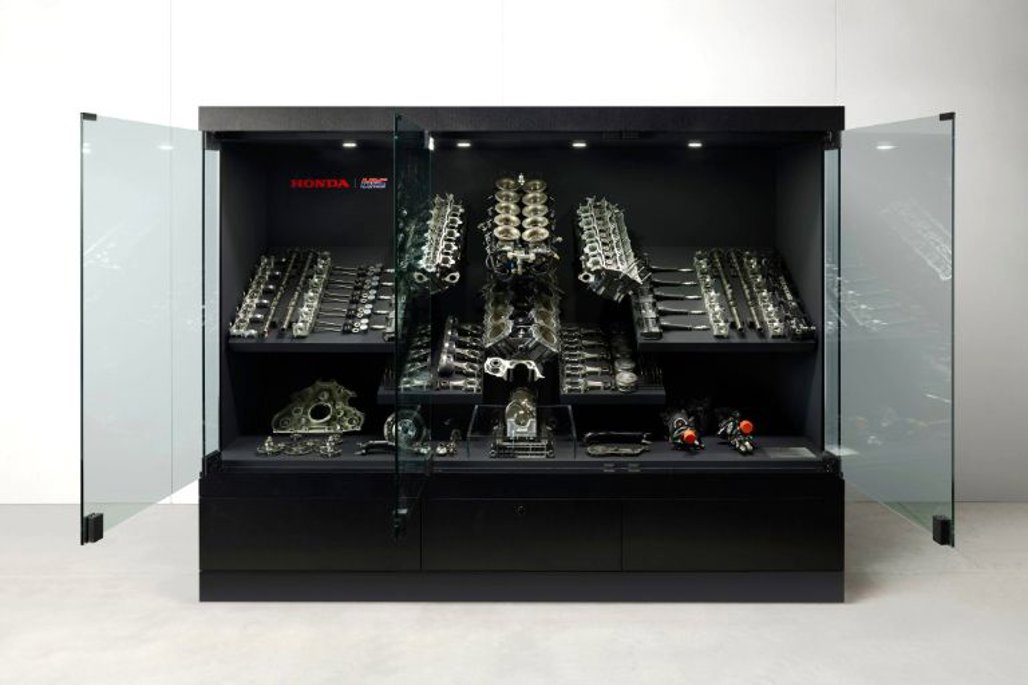 Oh, one thing: it's in bits. Beautifully presented, in bits. The engine, disassembled by HRC mechanics, comes in a display case containing all parts.