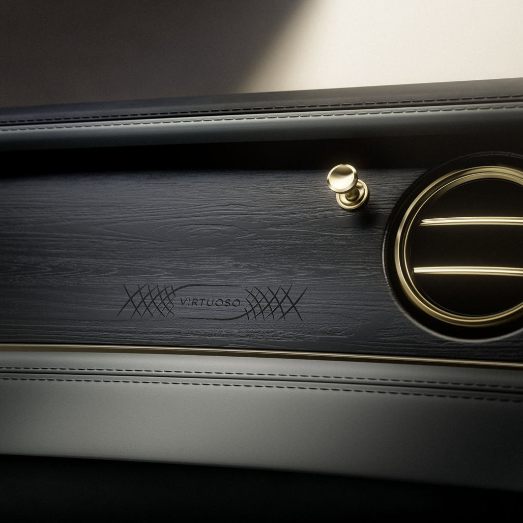 Bentley hasn’t stopped at acoustics. The Virtuoso Collection leans heavily into visual and tactile drama, with Champagne Gold detailing running across exterior badges, trim pieces and even the key.