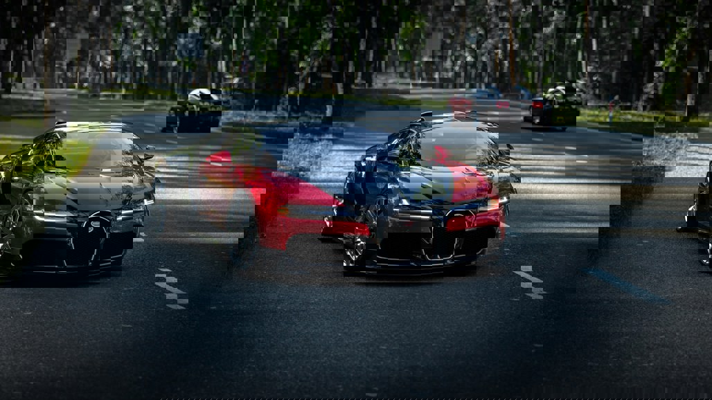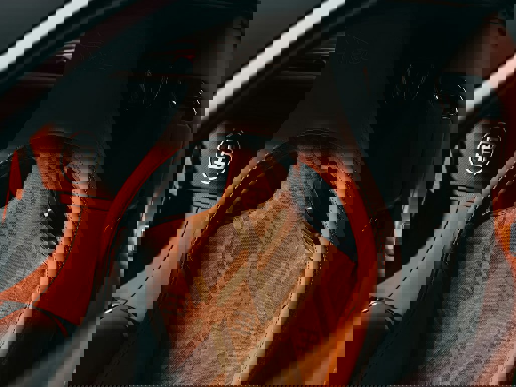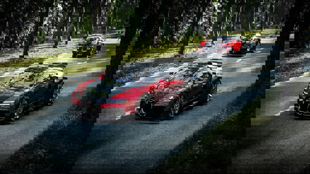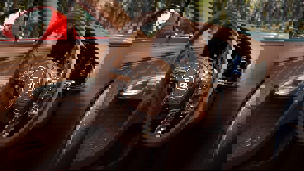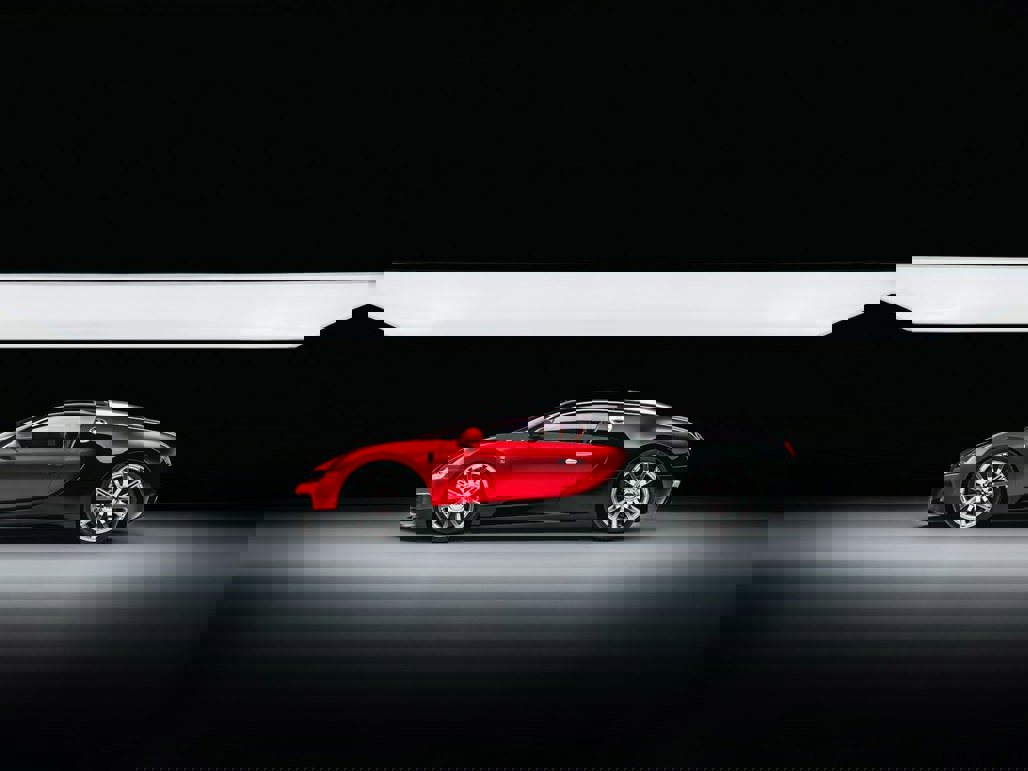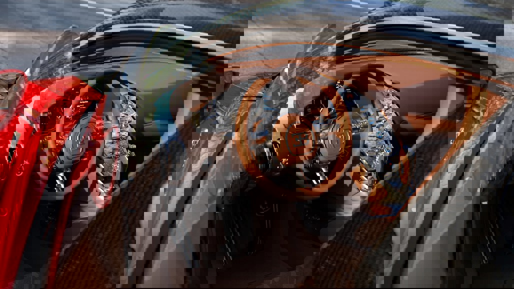 The paint is where the detail obsession really shows. The red finish uses a silver aluminium-based layer beneath a red-tinted clear coat to create depth, while the contrasting carbon fibre isn’t simply painted black, as Bugatti specifies 10% black pigment mixed into the clear coat for a darker, richer look.
