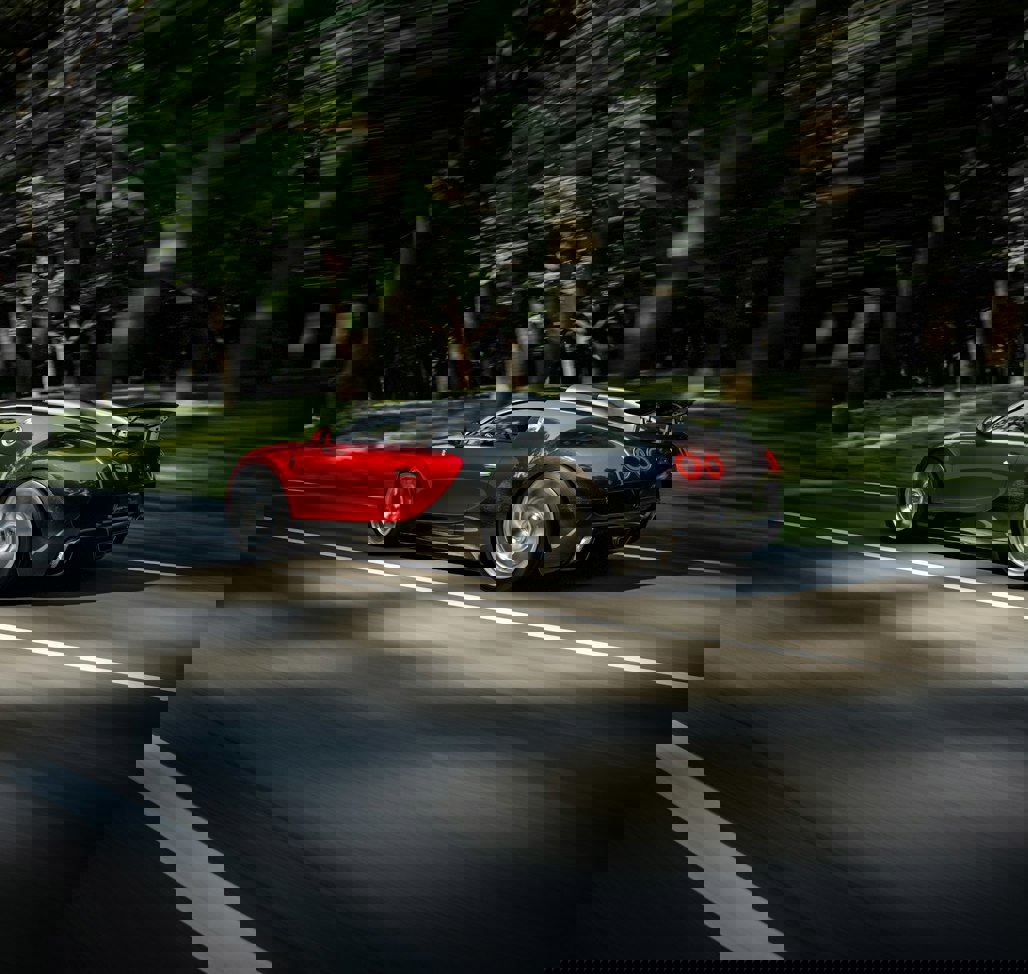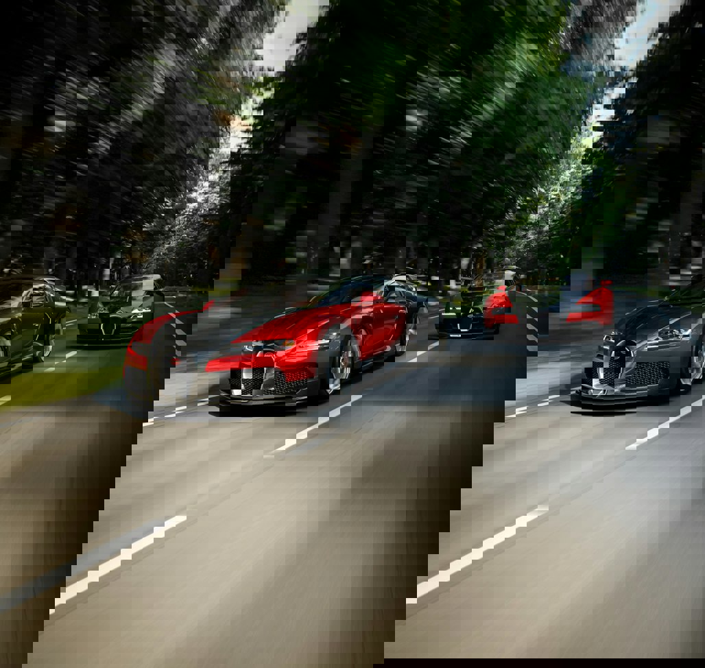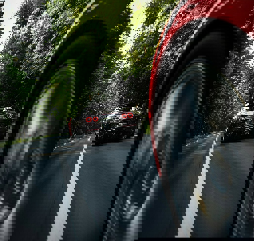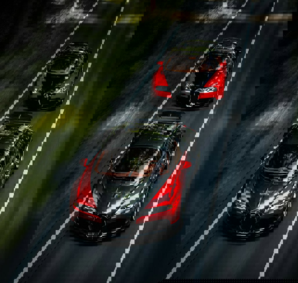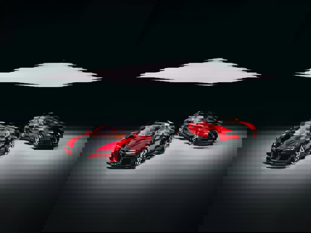 The paint is where the detail obsession really shows. The red finish uses a silver aluminium-based layer beneath a red-tinted clear coat to create depth, while the contrasting carbon fibre isn’t simply painted black, as Bugatti specifies 10% black pigment mixed into the clear coat for a darker, richer look.