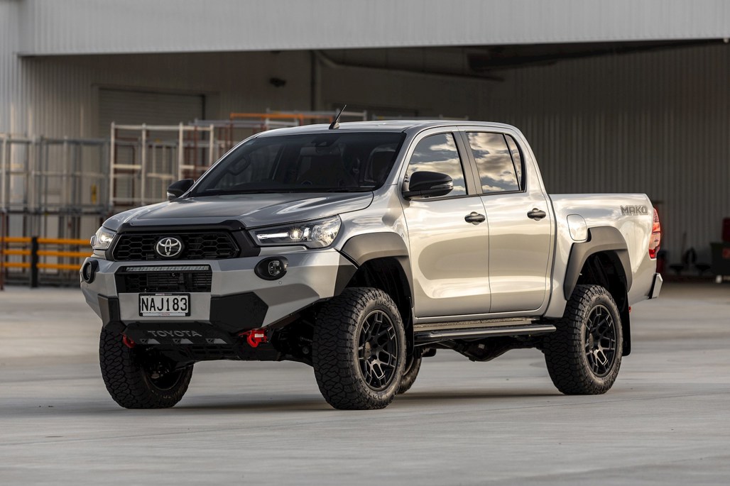 A halo model for the revised Hilux range that goes on sale on New Zealand from October, Mako is based on the Hilux SR5 Cruiser, but goes off the deep end with extreme customisation to create a genuine Toyota rival for the popular Raptor.
