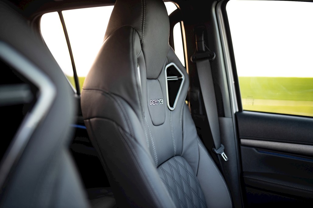 Inside, Mako features custom leather and a bespoke steering wheel.