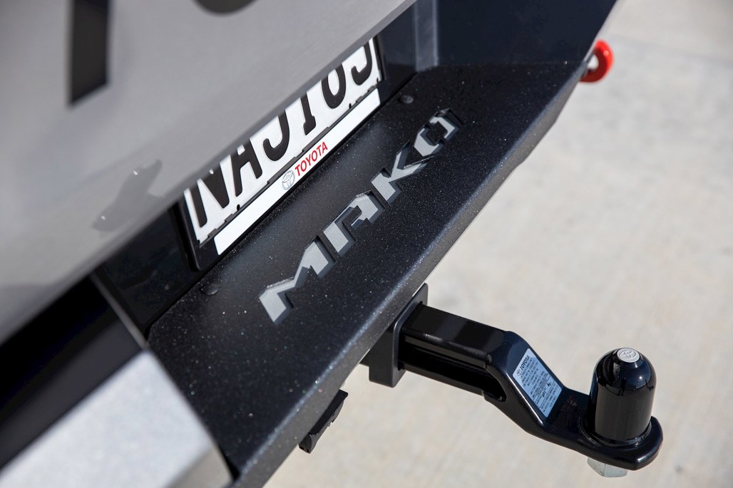 The only option is a $1500 towbar kit, which also includes prominent red rear tow hooks. The Mako gets one-up on its Raptor rival by maintaining the same 940kg payload and 3500kg braked tow rating as other double-cab 4WD Hilux models.