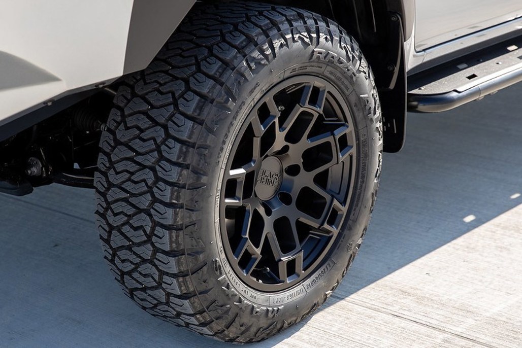 The wheels are 18-inch Black Rhino rims sourced from the US, wearing Maxxis Razr 265/60 all-terrain tyres.