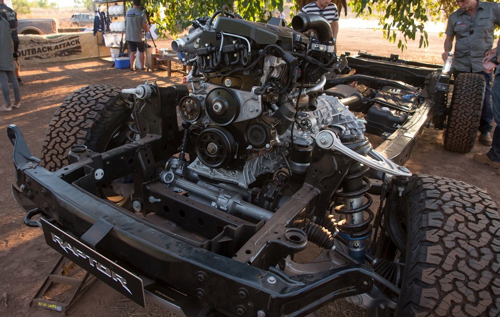 The Ranger Raptor is built on a unique frame – designed to take a lot more punishment during high speed off-road driving. The front accommodates strengthened shock absorber towers, while the rear houses a new bespoke coil over suspension setup with an integrated Watt’s linkage.