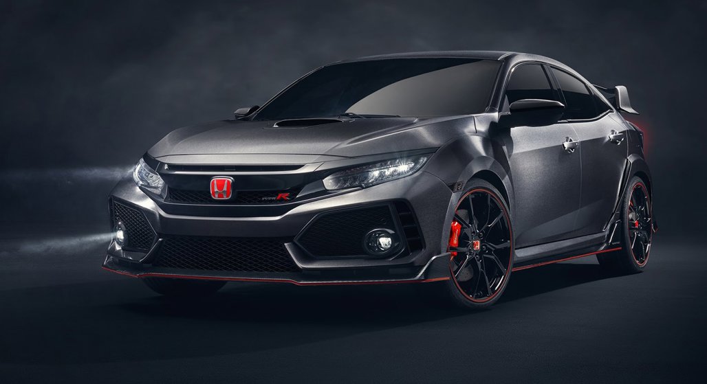 The familiar red-backed H and Type R badges dominate the snout, and a turbo intercooler intake in the bonnet rounds out the front-end looks.