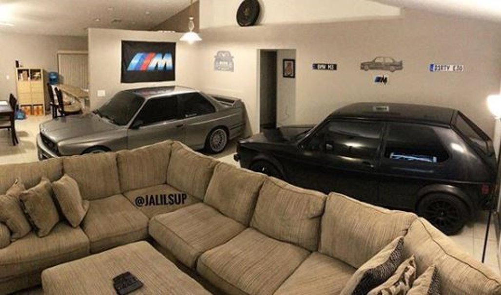 Not willing to take any chances with his M3 or his friend's classic VW Golf GTI, he figured that he had no other option than to move the two cars into his lounge.