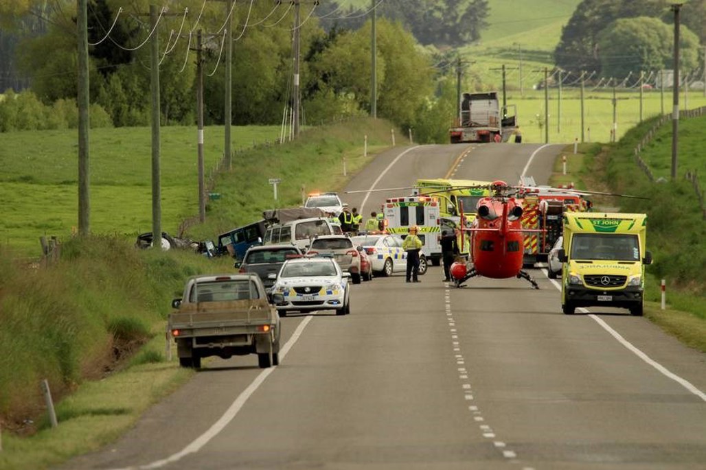 Senior Sergeant Ian Row said the car heading south crossed the centre line and smashed into a northbound vehicle, forcing it off the road.