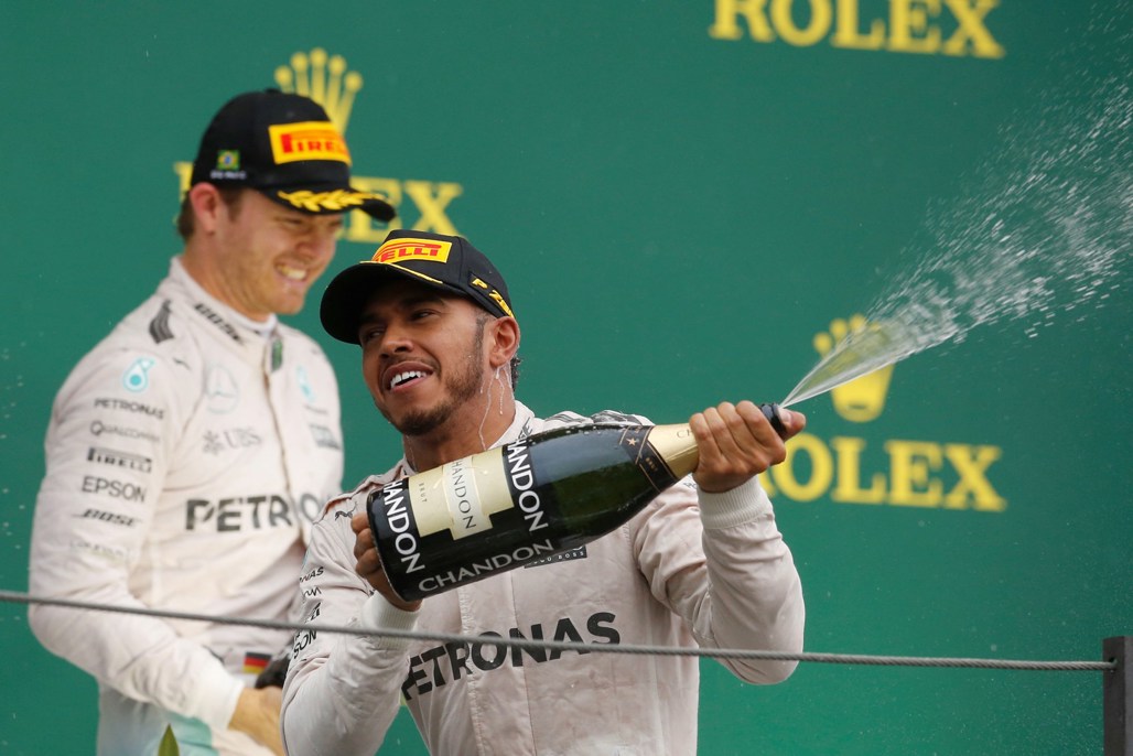 LONDON, Nov 14 AAP - Lewis Hamilton led from start to finish in Brazil and even though he concedes the F1 championship is likely out of his reach he couldn’t help but fire a shot at teammate Nico Rosberg.