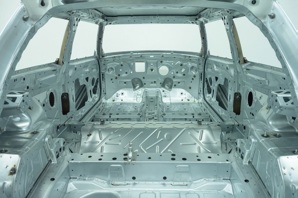 All interior trim parts have been omitted, with the exception of the dashboard, topper pad and parcel shelf, turning the bodyshell into the dominant visual feature of the cabin.