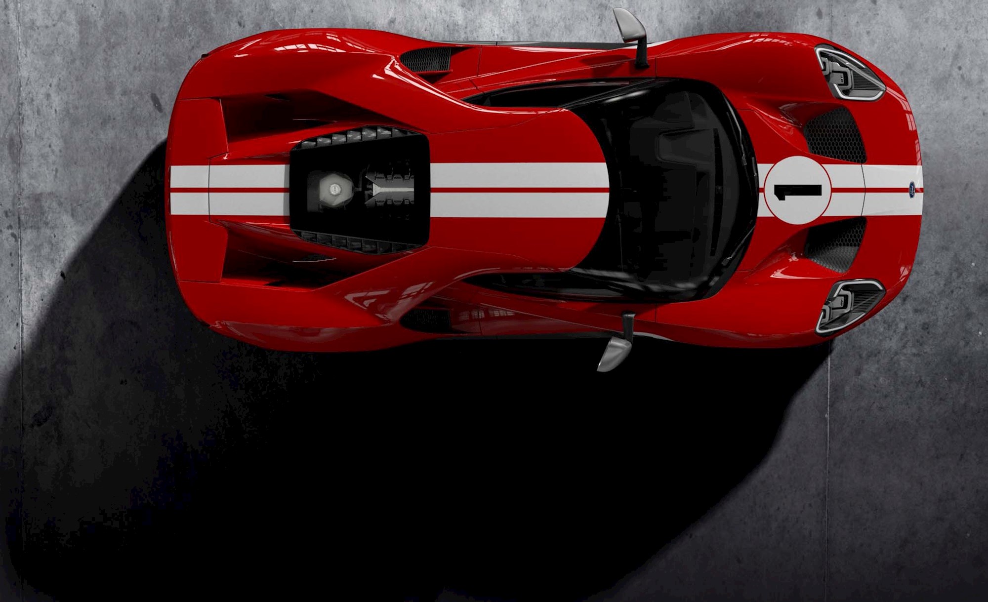 The car honours Ford's victory at the 1967 24 Hours of Le Mans 50 years ago with American fighter pilots Dan Gurney and A.J. Foyt. This means that it sports a Race Red and white striped paint scheme similar to the MkIV GT40 that Gurney and Foyt's raced, as well as carries a number of other changes.