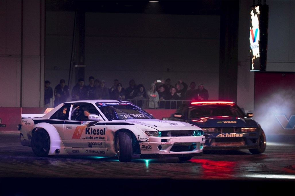 Liam Burke has emerged from the shadows to win the Valvoline D1NZ National Drifting Championship's return event; 'The Gauntlet' indoor showdown at ASB Showgrounds in Auckland.