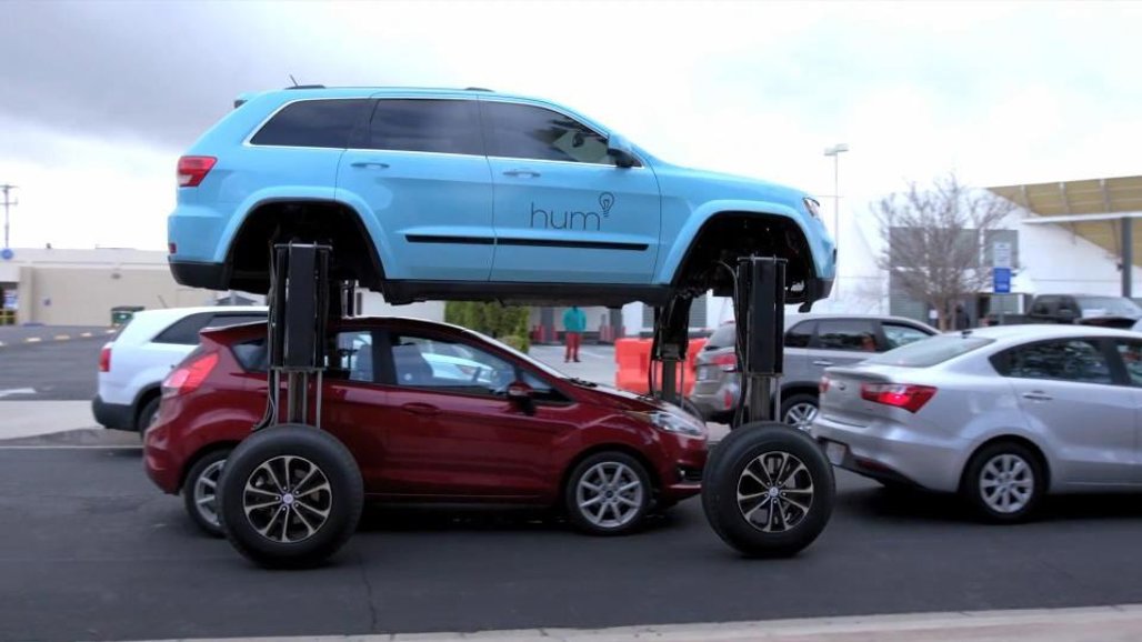 The system is activated by a switch on the dashboard; simply drive up to the back of a line of stationary traffic, flip the trigger and the wheels gradually sprawl out before the cabin lifts on telescopic limbs.