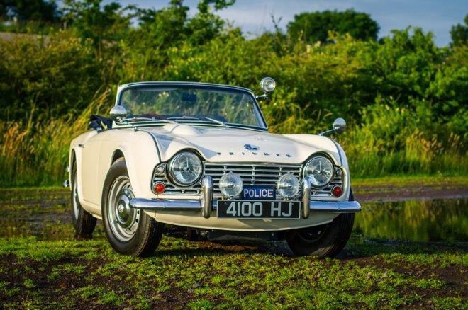 But ’ello, ’ello, what’s all this then? A 1962 Triumph TR4 high-speed police pursuit vehicle? You’re ’avin’ me on, son.