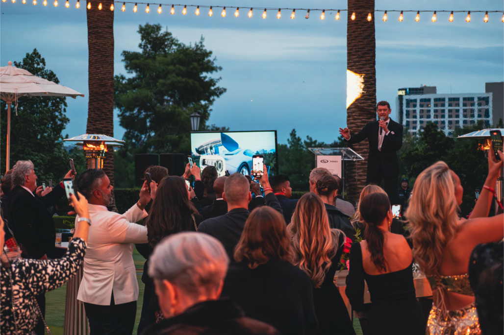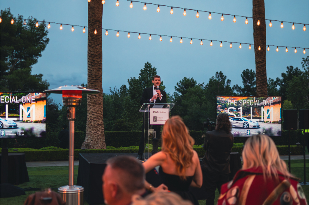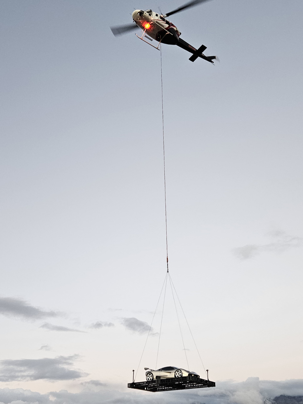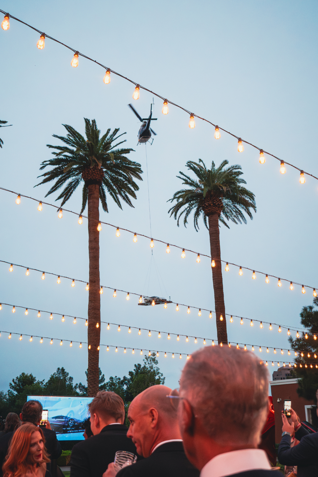 The car arrived at the auction venue in high style on November 21: dangling underneath a helicopter, lowered into the amfAR charity’s Gala Dinner at the Wynn Las Vegas venue.