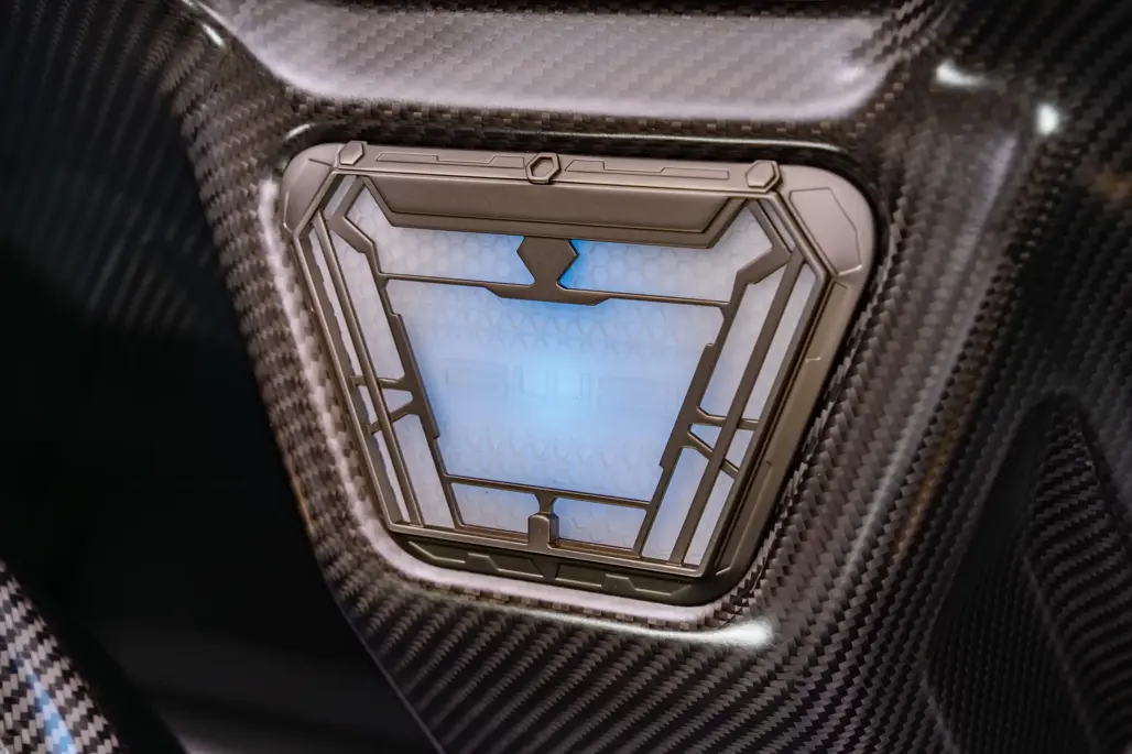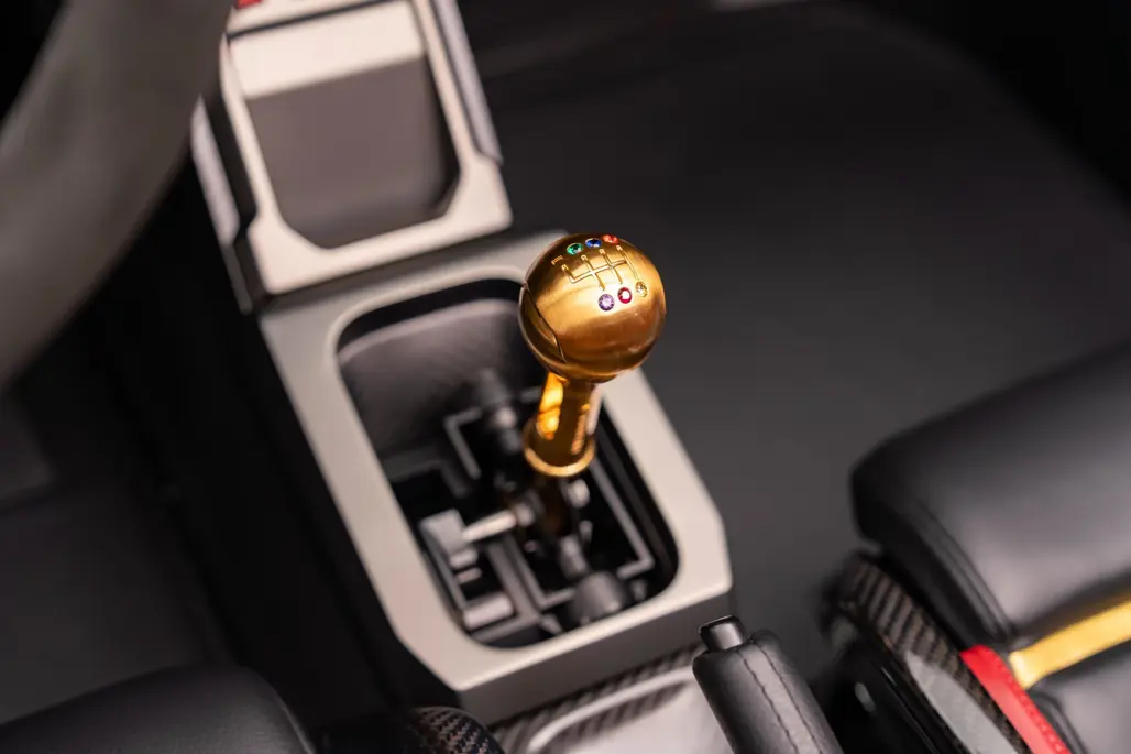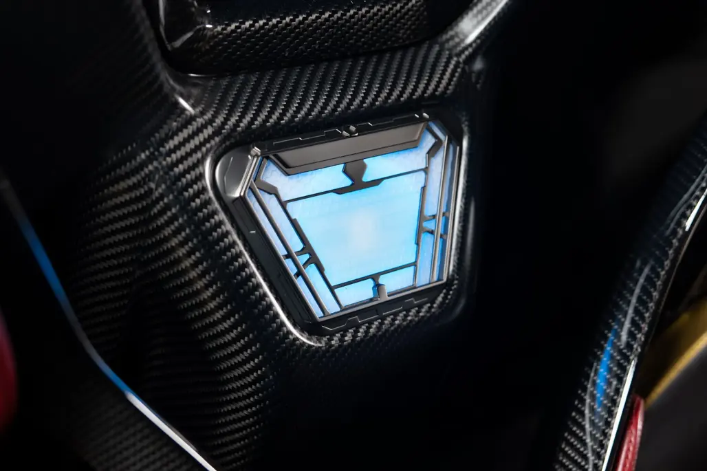 Inside, the concept continues. A bespoke gear shifter features 24-karat gold and a set of coloured stones representing each of the six gears in an an unmistakable nod to the Infinity Stones.