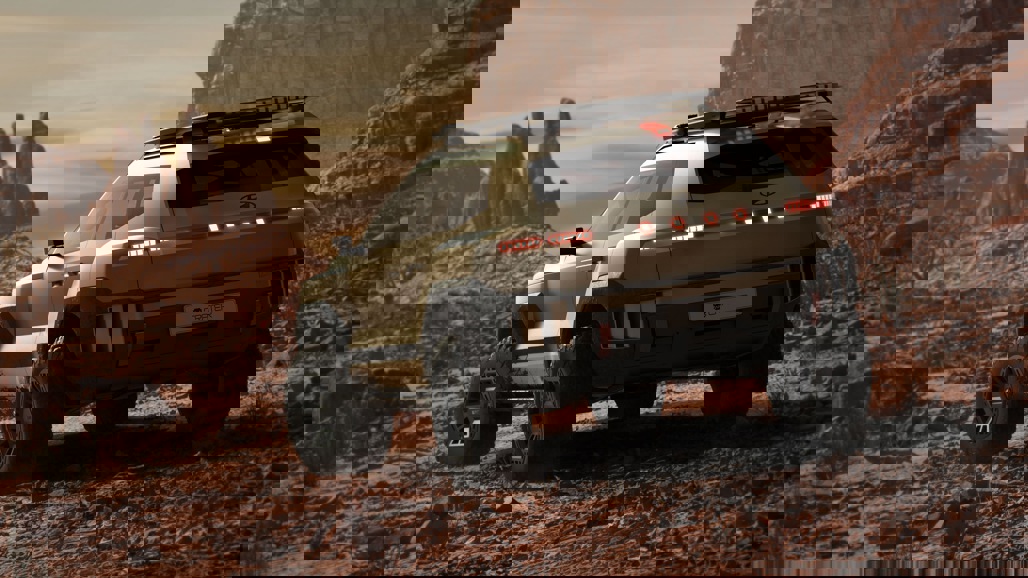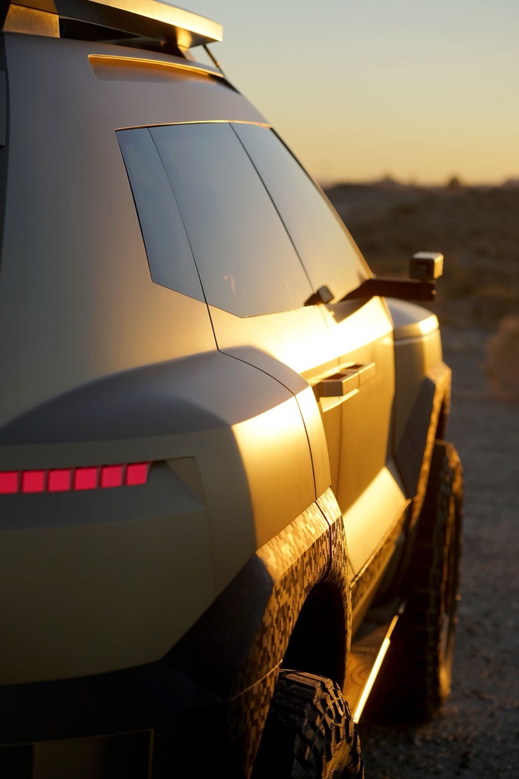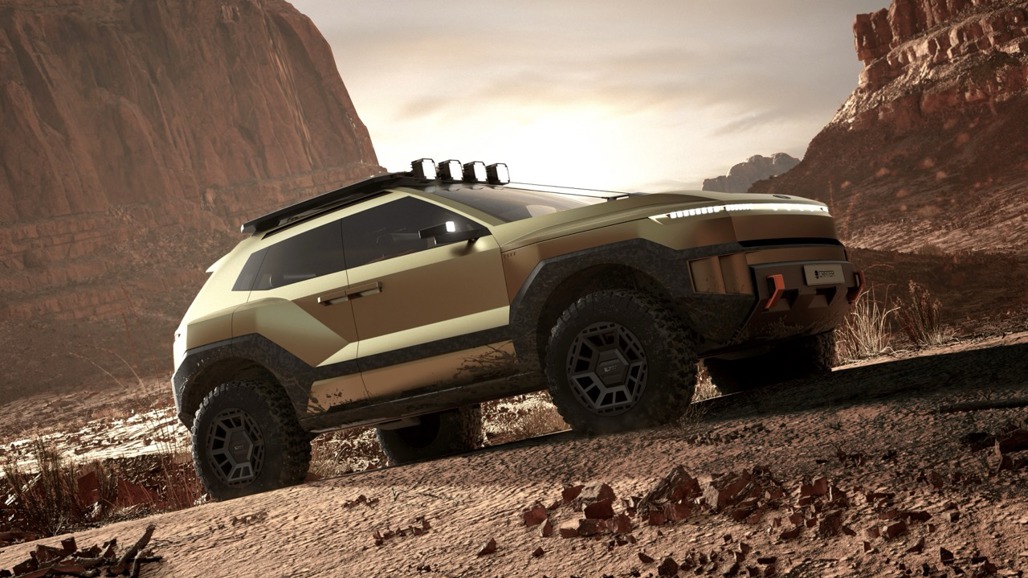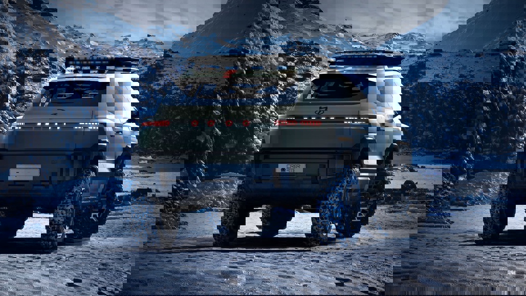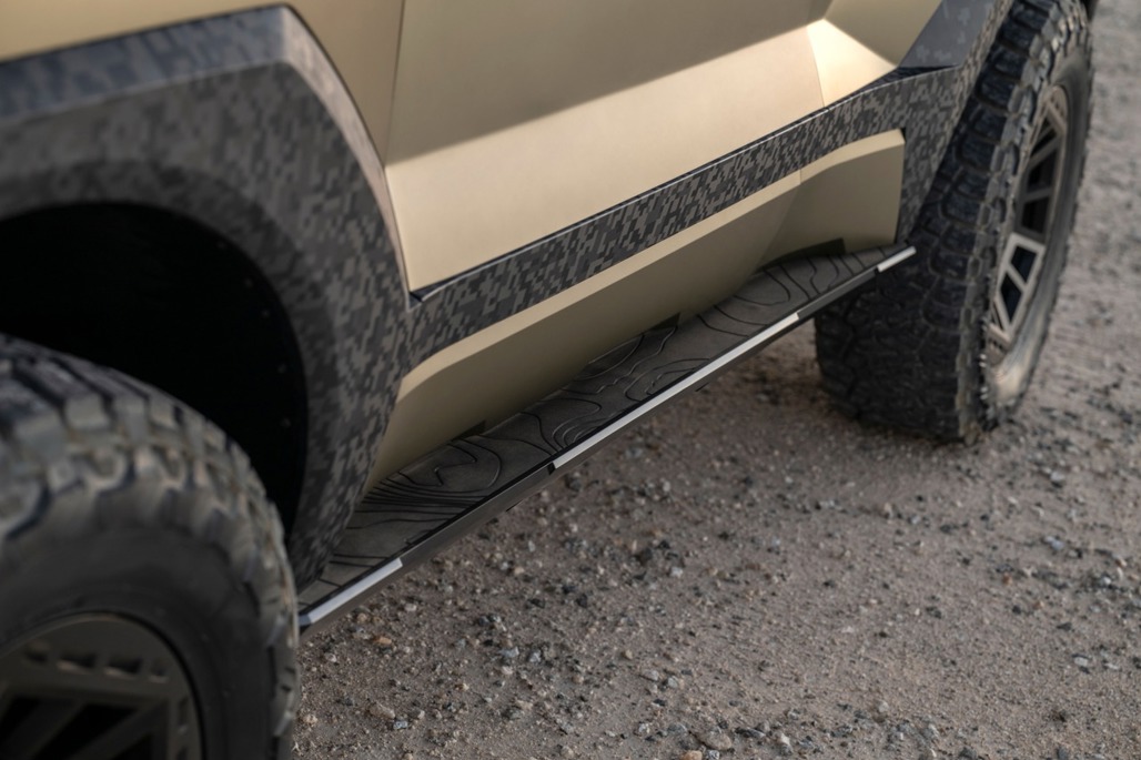 The Crater’s 18-inch hexagonal wheels, wrapped in burly 33-inch off-road tyres, were designed to look like an asteroid strike frozen in time, while a wide skid plate and limb risers add to the expedition aesthetic.