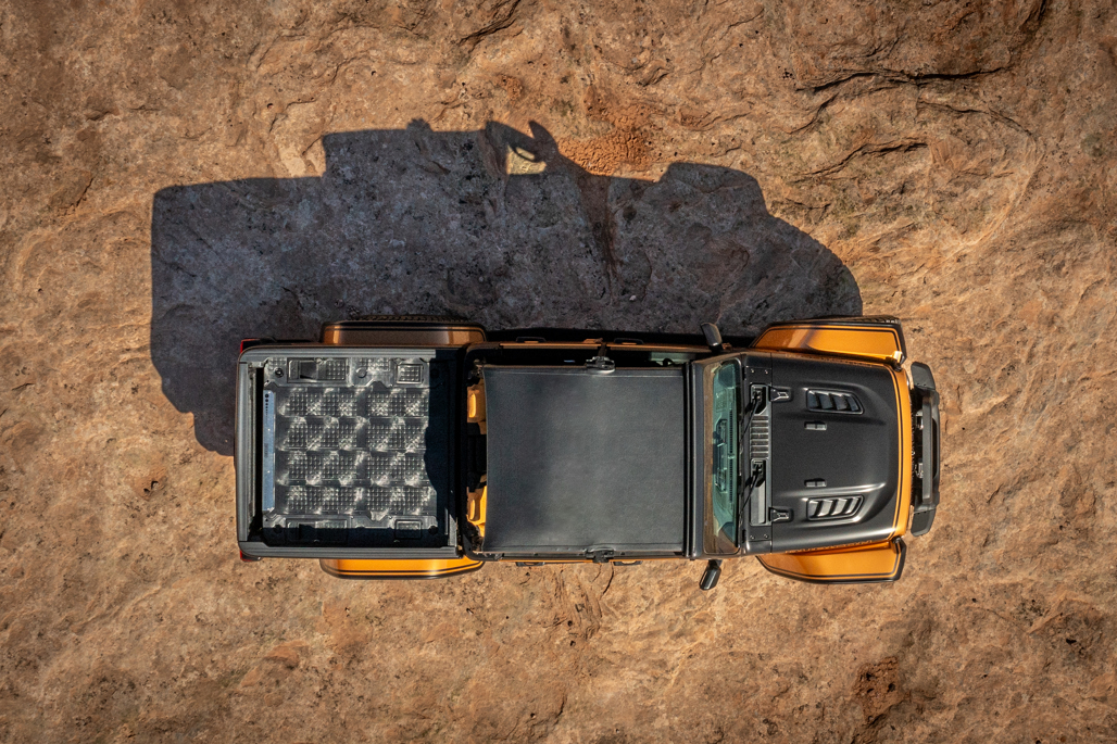 The Jeep Gladiator Rubicon High Top Concept elevates the midsize ute segment with its 3.6-litre Pentastar V-6 engine, 40-inch BFGoodrich All-Terrain T/A KO3 tyres, and Dana 60 axles.
