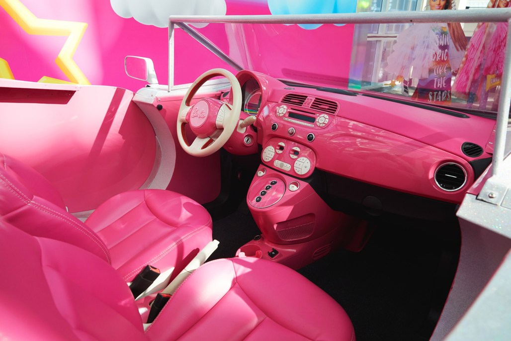 The car is overloaded with fun details that transform it into the ultimate Barbie-lovers ride. It has star shaped head and taillights, fluffy headrests and rainbow-patterned wheels. It even has a pair of iconic doors, shaped like swan wings. At the rear, you'll spot three star shaped exhaust tips and a chunky high-rise spoiler. Inside, the car is pretty much your standard Fiat 500. But of course, it's all Barbie pink.