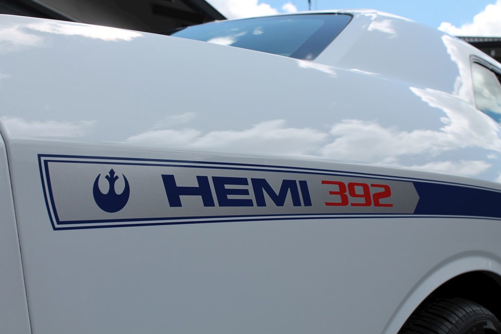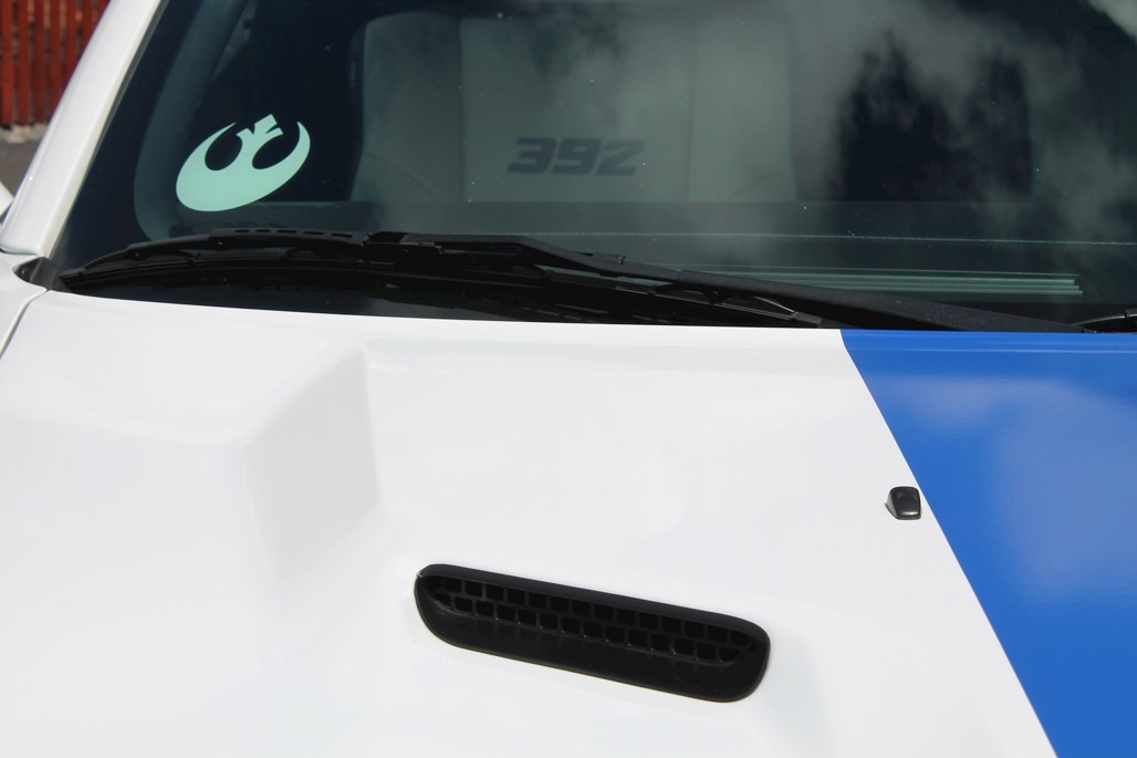 Star Wars graphics around the car. The blue and white detailing is pretty much what R2-D2 may look like, inside and out, if reclassified as a car.