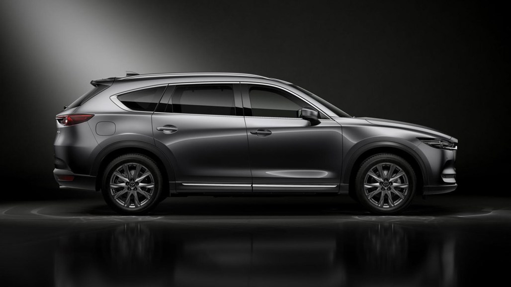 Sporting revamped versions of the Mazda CX-5's snout and the Mazda CX-9's rear end, the CX-8 is a Kodo-styled five door that snugly fits between the aforementioned pair on the size scale.