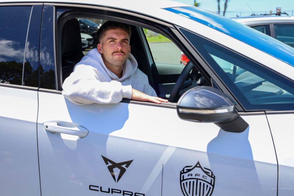 Guillermo May is a striker for Auckland Football Club (FC). He drives a Cupra Born.