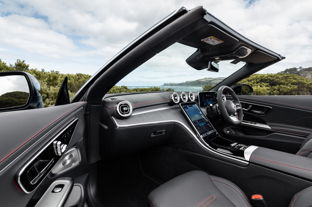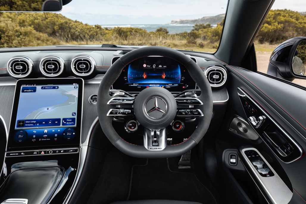 Despite its high-performance focus, the CLE 53 remains practical. The electric fabric roof opens in 20 seconds at speeds up to 60km/h and folds beneath an electric roller-divider, leaving 285L of boot space (375L with roof up).