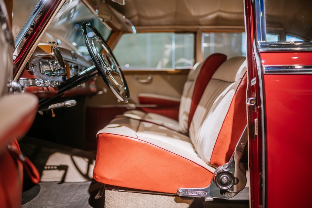 Most examples were finished in muted tones, making the museum’s red display car a rare and eye-catching variation.