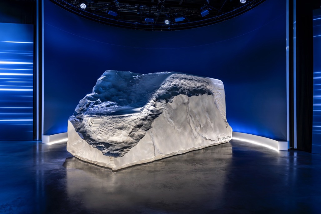 Mercedes-Benz Vans is marking nearly 130 years in the transport business by revealing Boulder, a dramatic sculpture milled from a single block to preview the next-generation Sprinter.