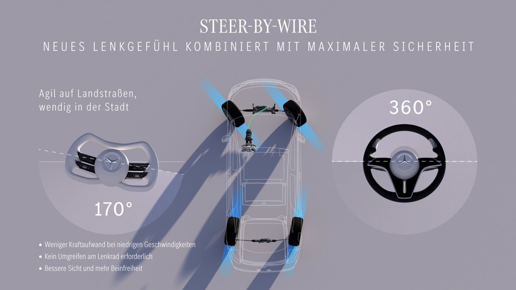 Steer-by-wire will be available across all EQS variants alongside conventional electromechanical steering as an option.