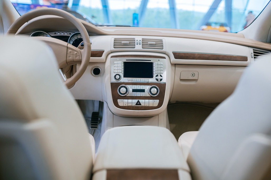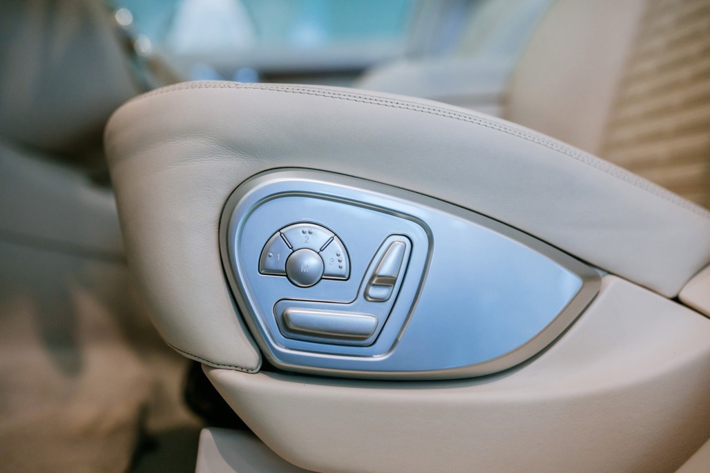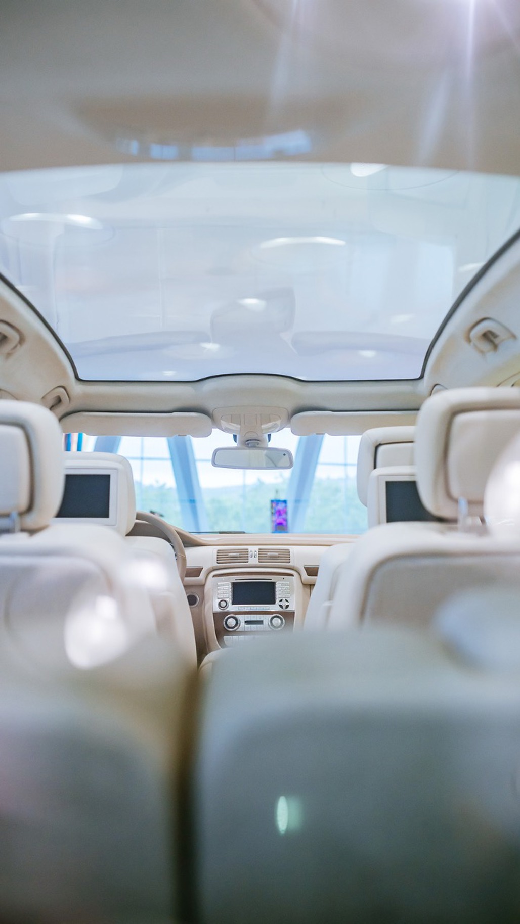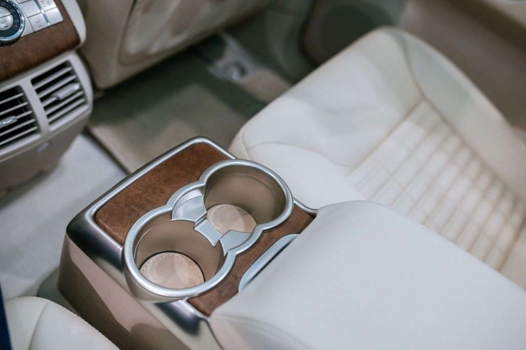 Inside, the cabin carried a lounge-like atmosphere, trimmed in “Mohairbeige” with contrasting lighter tones and metallic accents. A panoramic glass roof blurred the line between cabin and sky, while rear passengers were treated to flat screens integrated into the front headrests — peak mid-2000s tech.