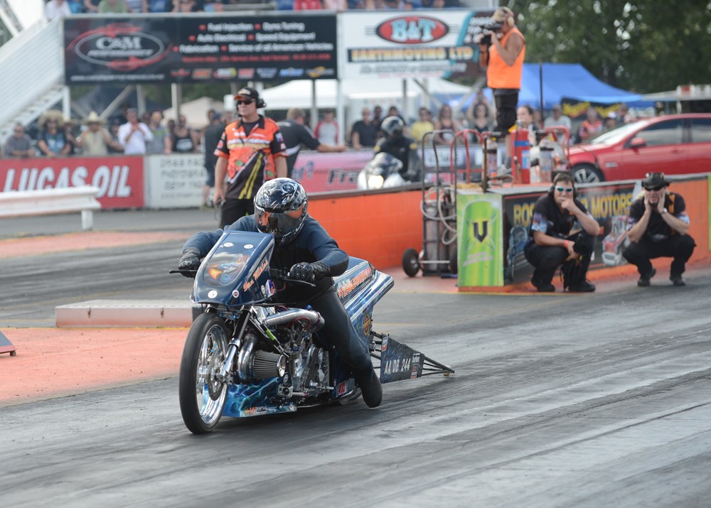 Ian Hilder (West Harbour) on his ProStock Suzuki raced to a new A/Drag Bike ET of 7.810s but it was Bill Hamilton on his Bird of Prey Suzuki Hayabusa Pro Street machine who won the Competition Bike final against Hilder and reset the AA/Altered Bike record at 8.090secs.