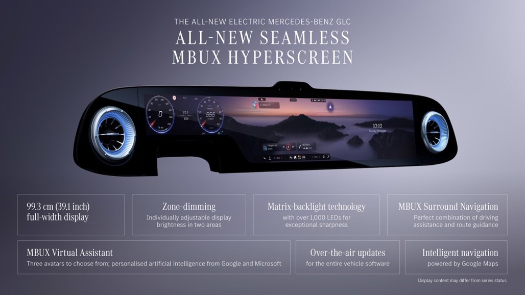 Powered by the brand’s new MB.OS operating system, the display supports AI-driven personalisation and even integrates Google and Microsoft AI tools for natural conversation and infotainment control.