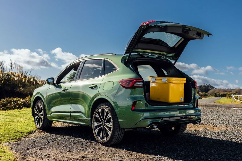 The updated Escape is available in NZ in three different models, with three different powertrains. The Titanium FHEV is the new entry point to the range, with 132kW and FWD, priced at $59,990. And since towing is a theme here: it can handle 1.6t.