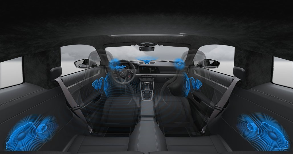 Stopping power comes from Porsche’s largest-ever PCCB system on a two-door, with discs up to 420mm. Active aero adds to the drama: cooling flaps, an adjustable diffuser and that signature deployable rear wing now work as one to cut drag by 10% while boosting stability in the wet. A standard titanium sports exhaust drops nearly 7kg and tunes the boxer soundtrack into something throatier.