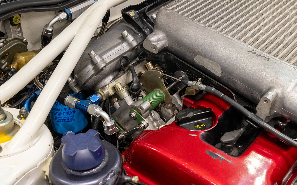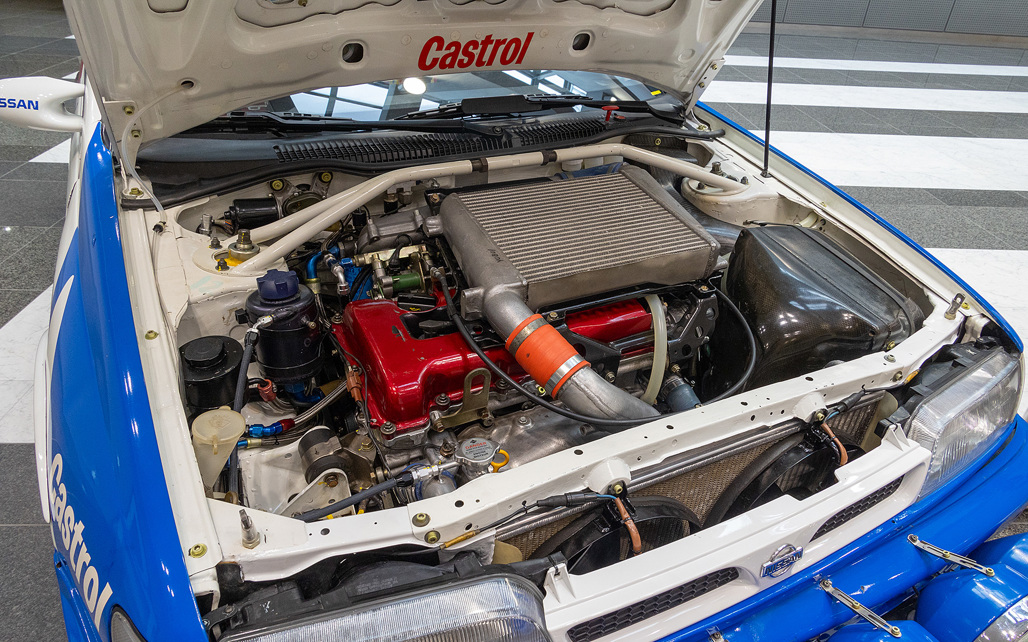 The Pulsar GTI-R's engine, an SR20DET, featured modifications like a larger turbocharger and an intricate four-throttle intake system, a unique system which it shared with the 15,000 road cars built between 1990-1994.