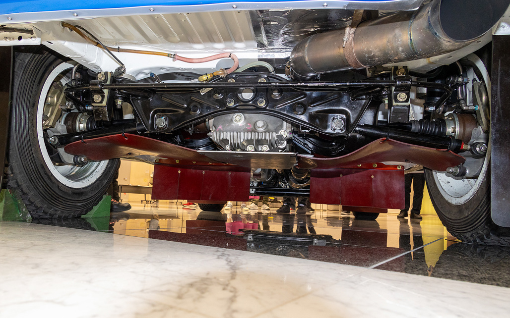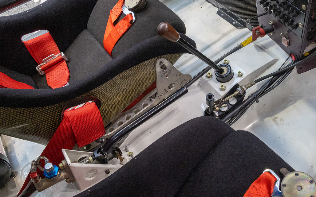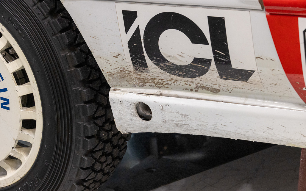The drivetrain included a six-speed dog-clutch transmission encased in magnesium and a bespoke electronic control system for the rear differential, showcasing the car's advanced rally-specific adaptations.