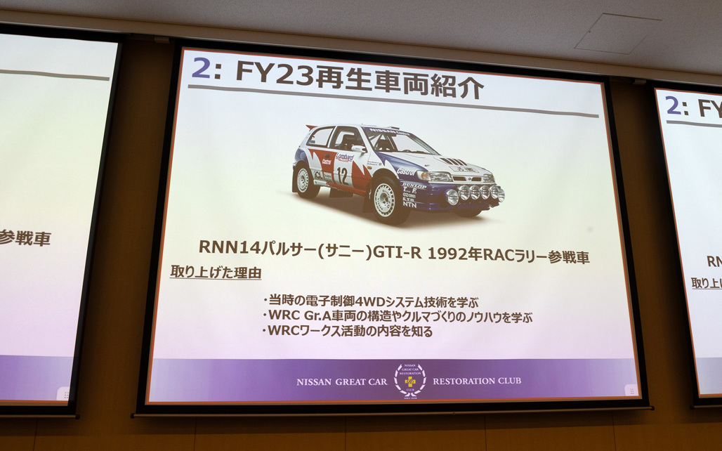 Following the successful revival of the Pulsar GTI-R, the club is set to restore the Fairlady Z 300ZX, a vehicle that triumphed in the All Japan Rally Championship in 1985.