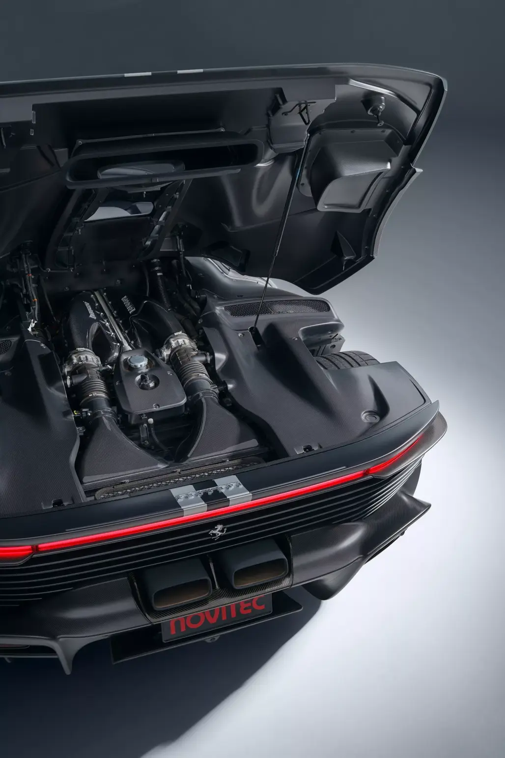 Novitec has shown unusual restraint elsewhere. There’s no widebody conversion, no extra aero flicks or bolt-on theatrics. The sculpted body remains as Ferrari intended.