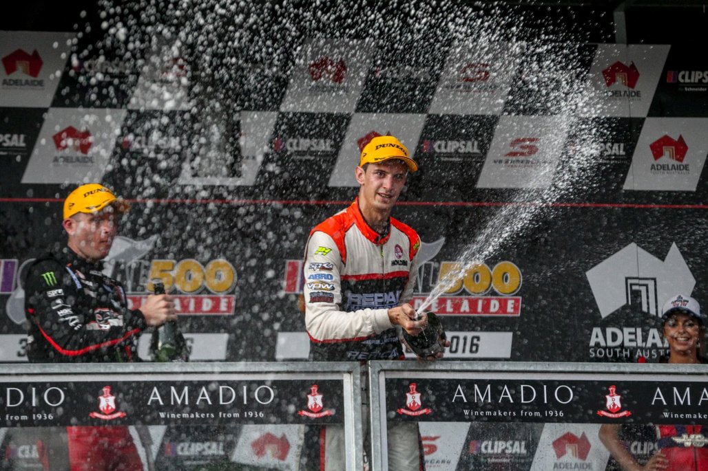 2011 Bathurst 1000 champion Nick Percat has taken his first solo race win on the streets of Adelaide, at the Clipsal 500, after an incredible and controversial race dominated by incident and political tension in pit lane.