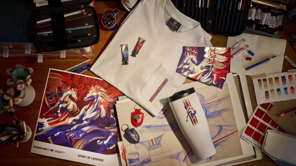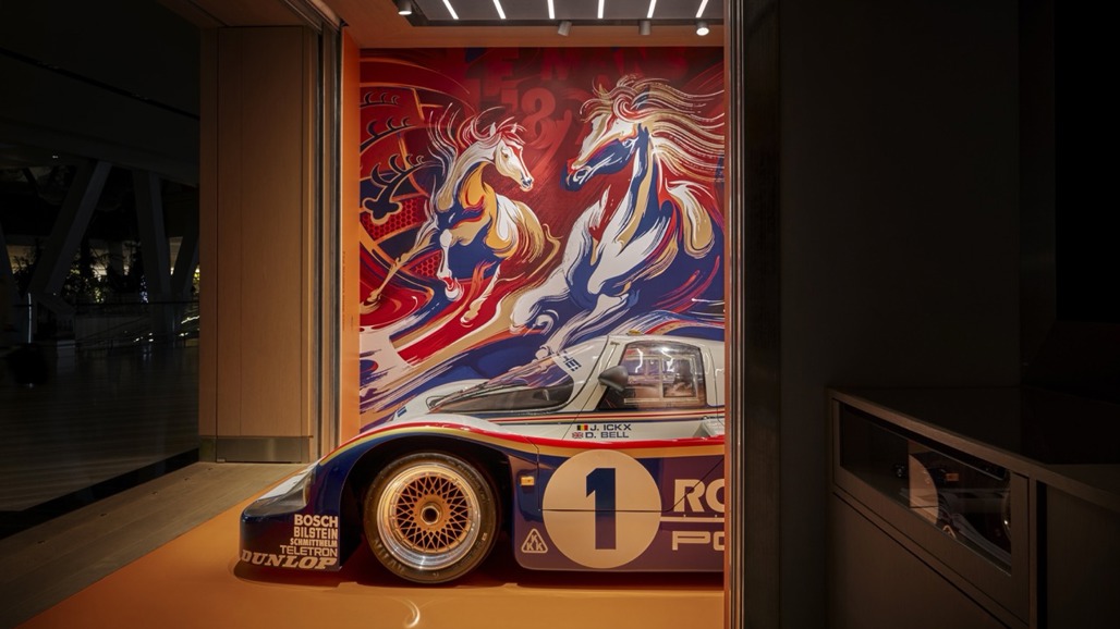 - The artwork references the horse in the Porsche crest and the brand’s racing heritage.